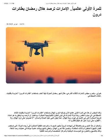 تﺎﯿﻨﻘﺘﺑ ةدوﺰﻤﻟا "نورﺪﻟا تاﺮﺋﺎط" ماﺪﺨﺘﺳﺎﺑ ،مﺎﻌﻟا اﺬﮭﻟ كرﺎﺒﻤﻟا نﺎﻀﻣر ﺮﮭﺷ لﻼھ ،ﻲﻋﺮﺸﻟا ءﺎﺘﻓﻺﻟ تارﺎﻣﻹا ﺲﻠﺠﻣ ىﺮﺤﺘﯾ - ﻲﻧﺮﺒﺧ