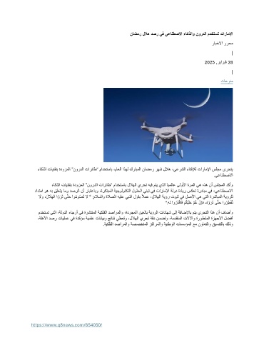 ءاكذلا تاينقتب ةدوزملا ”نوردلا تارئاط“ مادختساب ،ماعلا اذهل كرابملا ناضمر رهش للاه ،يعرشلا ءاتفلإل تاراملإا سلجم ىرحتي