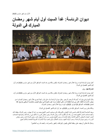 لوأ وه 2025 سرام رهش نم لولأا قفاوملا تبسلا ٍدغ موي كلذب نوكيل ،كرابملا ناضمر رهش للاه ةيؤر توبث ةسائرلا ناويد نلعأ
