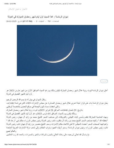 3/3/25, 12:53 PM ﺔﻟودﻟا ﻲﻓ كرﺎﺑﻣﻟا نﺎﺿﻣر رﮭﺷ مﺎﯾأ لوأ تﺑﺳﻟا ًادﻏ : ﺔﺳﺎﺋرﻟا ناوﯾد