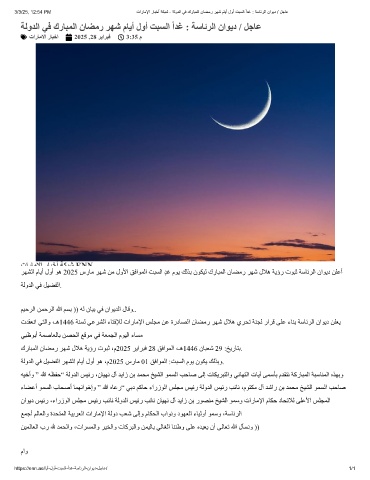 3/3/25, 12:54 PM تارﺎﻣﻹا رﺎﺑﺧأ ﺔﻛﺑﺷ - ﺔﻟودﻟا ﻲﻓ كرﺎﺑﻣﻟا نﺎﺿﻣر رﮭﺷ مﺎﯾأ لوأ تﺑﺳﻟا ًادﻏ : ﺔﺳﺎﺋرﻟا ناوﯾد / لﺟﺎﻋ