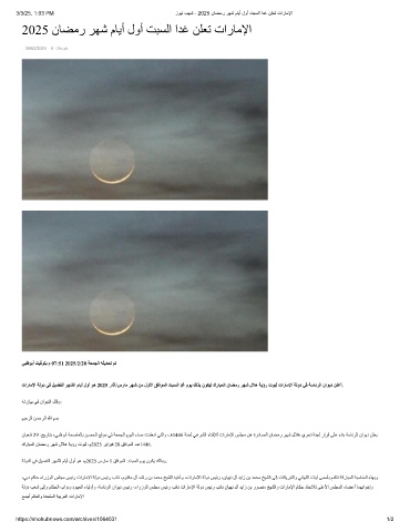 تارﺎﻣﻹا ﺔﻟود ﻲﻓ ﻞﯿﻀﻔﻟا ﺮﮭﺸﻟا مﺎﯾأ لوأ ﻮھ 2025 راذآ/سرﺎﻣ ﺮﮭﺷ ﻦﻣ لوﻷا ﻖﻓاﻮﻤﻟا ﺖﺒﺴﻟا ٍﺪﻏ مﻮﯾ ﻚﻟﺬﺑ نﻮﻜﯿﻟ كرﺎﺒﻤﻟا نﺎﻀﻣر ﺮﮭﺷ لﻼھ ﺔﯾؤر تﻮﺒﺛ تارﺎﻣﻹا ﺔﻟود ﻲﻓ ﺔﺳﺎﺋﺮﻟا ناﻮﯾد ﻦﻠﻋأ.
