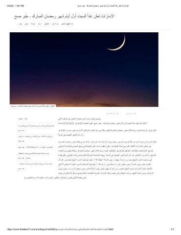 3/3/25, 1:06 PM ﺢﺻ رﺑﺧ - كرﺎﺑﻣﻟا نﺎﺿﻣر رﮭﺷ مﺎﯾأ لوأ تﺑﺳﻟا ًادﻏ نﻠﻌﺗ تارﺎﻣﻹا