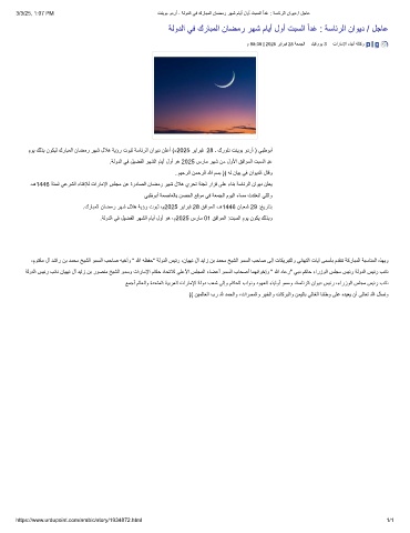 موﯾ كﻟذﺑ نوﻛﯾﻟ كرﺎﺑﻣﻟا نﺎﺿﻣر رﮭﺷ لﻼھ ﺔﯾؤر توﺑﺛ ﺔﺳﺎﺋرﻟا ناوﯾد نﻠﻋأ (ء2025 رﯾارﺑﻓ 28 ۔ كروﺗﻧ تﻧﯾوﺑ ودرأ ) ﻲﺑظوﺑأ