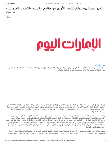 9/17/25, 8:13 AM «ﺔﯾﺋﺎﺿﻘﻟا ﺔﯾوﺳﺗﻟاو ﺢﻠﺻﻟا» ﺞﻣﺎﻧرﺑ نﻣ ﻰﻟوﻷا ﺔﻌﻓدﻟا ﻖﻠطﯾ «ﻲﺋﺎﺿﻘﻟا ﻲﺑد»