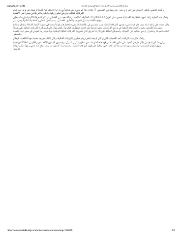 ﺞﻣﺎﻧﺮﺑ ﻞﻜﺸﯾو .ﺔﻠﻣﺎﺸﻟا ﺔﯿﻤﻨﺘﻟا ةﺮﯿﺴﻣ ﻲﻓ ﺔﯿﺳﺎﺳأ ةﺰﯿﻛر ﺎھرﺎﺒﺘﻋﺎﺑ ،ﻲﻨطﻮﻟا دﺎﺼﺘﻗﻻا ﻲﻓ يرﻮﺤﻣ روﺪﺑ ﺔﯿﻠﺋﺎﻌﻟا تﺎﻛﺮﺸﻟا ﻢﮭﺴﺗ» :ﻲﺑد فﺮﻏ مﺎﻋ ﺮﯾﺪﻣ هﺎﺗﻮﻟ ﺪﺷار ﻲﻠﻋ ﺪﻤﺤﻣ لﺎﻗو