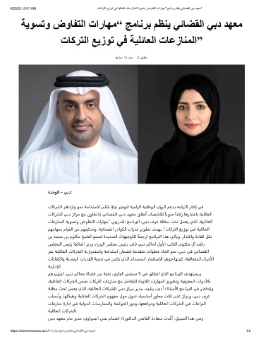 تﺎﻋزﺎﻨﻤﻟا ﺔﻳﻮﺴﺗو ضوﺎﻔﺘﻟا تارﺎﻬﻣ“ ﻲﺒﻳرﺪﺘﻟا ﺞﻣﺎﻧﺮﺒﻟا ،ﻲﺑد فﺮﻏ ﺔﻠﻈﻣ ﺖﺤﺗ ﻞﻤﻌﻳ يﺬﻟا ،ﺔﻴﻠﺋﺎﻌﻟا