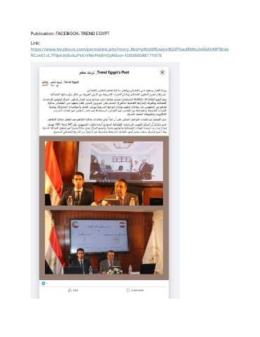 Publication: FACEBOOK- TREND EGYPT Link: https://www.facebook.com/permalink.php?story_fbid=pfbid0RuwjorB24F5wd8NfxUhK6Ahf9FSh4s RCzk61zL7F9j4rJbBxXuPkKrYNnMd8HDjAl&id=100090048171978