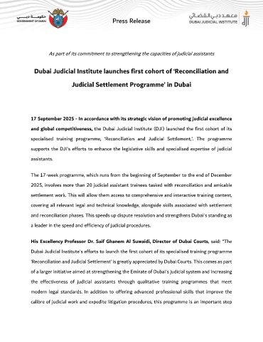 Judicial Settlement Programme’ in Dubai