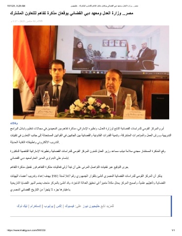 10/1/25, 9:28 AM نوﯾﺟﯾﻠﺧ - كرﺗﺷﻣﻟا نوﺎﻌﺗﻠﻟ مھﺎﻔﺗ ةرﻛذﻣ نﺎﻌﻗوﯾ ﻲﺋﺎﺿﻘﻟا ﻲﺑد دﮭﻌﻣو لدﻌﻟا ةرازو ..رﺻﻣ