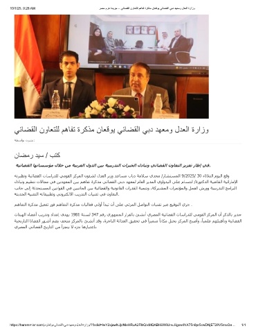 10/1/25, 9:28 AM رﺻﻣ مرھ ةدﯾرﺟ – ﻲﺋﺎﺿﻘﻟا نوﺎﻌﺗﻠﻟ مھﺎﻔﺗ ةرﻛذﻣ نﺎﻌﻗوﯾ ﻲﺋﺎﺿﻘﻟا ﻲﺑد دﮭﻌﻣو لدﻌﻟا ةرازو