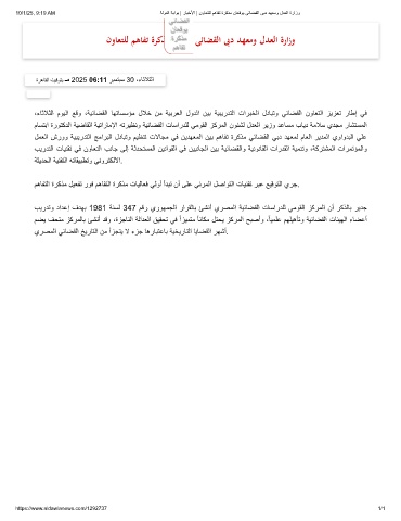 ،ءﺎﺛﻼﺛﻟا موﯾﻟا ﻊﻗو ،ﺔﯾﺋﺎﺿﻘﻟا ﺎﮭﺗﺎﺳﺳؤﻣ لﻼﺧ نﻣ ﺔﯾﺑرﻌﻟا لودﻟا نﯾﺑ ﺔﯾﺑﯾردﺗﻟا تارﺑﺧﻟا لدﺎﺑﺗو ﻲﺋﺎﺿﻘﻟا نوﺎﻌﺗﻟا زﯾزﻌﺗ رﺎطإ ﻲﻓ