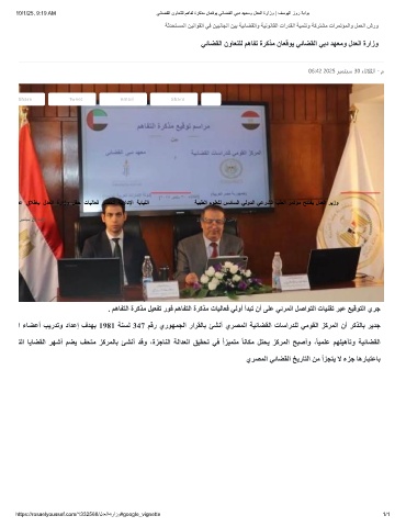 10/1/25, 9:19 AM ﻲﺋﺎﺿﻘﻟا نوﺎﻌﺗﻠﻟ مھﺎﻔﺗ ةرﻛذﻣ نﺎﻌﻗوﯾ ﻲﺋﺎﺿﻘﻟا ﻲﺑد دﮭﻌﻣو لدﻌﻟا ةرازو | فﺳوﯾﻟا زور ﺔﺑاوﺑ
