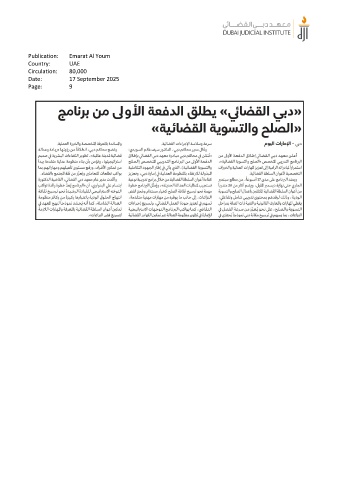 Publication: Emarat Al Youm Country: UAE Circulation: 80,000 Date: 17 September 2025 Page: 9
