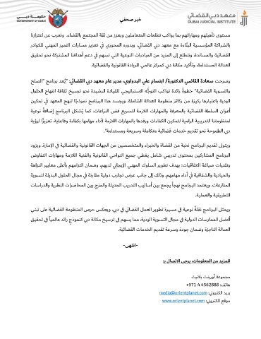 دوﺰﻳو . ةرﺎﻣﻹا ي ﻓ ﺔﻴﺋﺎﻀﻘﻟاو ﺔﻴﻧﻮﻧﺎﻘﻟا تﺎﻬﺠﻟا ﻦﻣ ﻦﻴﺼﺼﺨﺘﻤﻟاو ءاﺮﺒﺨﻟا و ةﺎﻀﻘﻟا ﻦﻣ ﺔﺒﺨﻧ ﺞﻣﺎﻧﺮﺒﻟا ﻢﻳﺪﻘﺗ ىﻟﻮﺘﻳو
