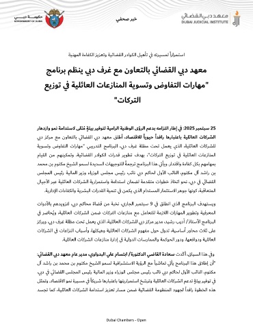 ي ﺑد ﺰﻛﺮﻣ ﻊﻣ نوﺎﻌﺘﻟﺎﺑ ي ﺋﺎﻀﻘﻟا ي ﺑد ﺪﻬﻌﻣ ﻖﻠﻃأ ،دﺎﺼﺘﻗﻼﻟ ً ﺎﻳﻮﻴﺣ ً اﺪﻓار ﺎﻫرﺎﺒﺘﻋﺎﺑ ﺔﻴﻠﺋﺎﻌﻟا تﺎﻛﺮﺸﻟا