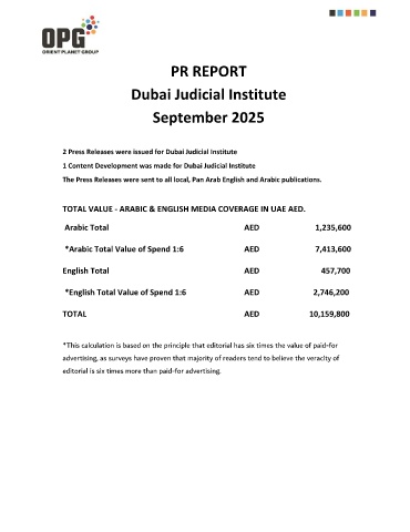 TOTAL VALUE - ARABIC & ENGLISH MEDIA COVERAGE IN UAE AED.