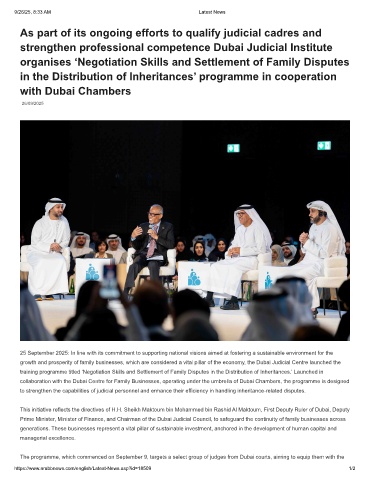growth and prosperity of family businesses, which are considered a vital pillar of the economy, the Dubai Judicial Centre launched the