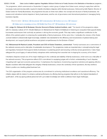 9/26/25, 8:34 AM Dubai Judicial Institute organises ‘Negotiation Skills and Settlement of Family Disputes in the Distribution of Inheritances’ programm…