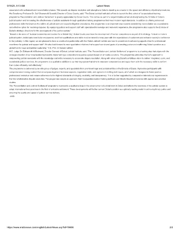 adopt international best practices in the field of amicable settlement. These developments will further cement Dubai's position as a globally leading model in achieving timely justice and
