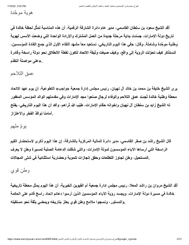 ﺢﺗﻔﯾ ،ﻲﺧﯾرﺎﺗﻟا موﯾﻟا اذھ نأ دﻛأو ،مھارﺛ ﷲ بّﯾط ،تارﺎﻣﻹا مﺎّﻛﺣ ﮫﻧاوﺧإو نﺎﯾﮭﻧ لآ نﺎطﻠﺳ نﺑ دﯾاز ﺦﯾﺷﻟا ﮫﻟ