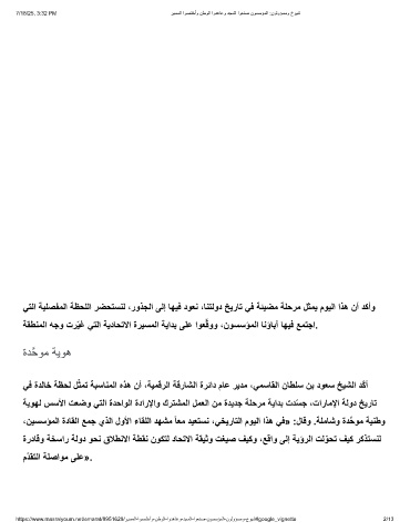 ﻲﻓ ةدﻟﺎﺧ ﺔظﺣﻟ لﺛﻣﺗ ﺔﺑﺳﺎﻧﻣﻟا هذھ نأ ،ﺔﯾﻣﻗرﻟا ﺔﻗرﺎﺷﻟا ةرﺋاد مﺎﻋ رﯾدﻣ ،ﻲﻣﺳﺎﻘﻟا نﺎطﻠﺳ نﺑ دوﻌﺳ ﺦﯾﺷﻟا دّﻛأ