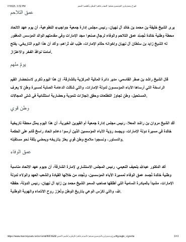 ﺢﺗﻔﯾ ،ﻲﺧﯾرﺎﺗﻟا موﯾﻟا اذھ نأ دﻛأو ،مھارﺛ ﷲ بّﯾط ،تارﺎﻣﻹا مﺎّﻛﺣ ﮫﻧاوﺧإو نﺎﯾﮭﻧ لآ نﺎطﻠﺳ نﺑ دﯾاز ﺦﯾﺷﻟا ﮫﻟ