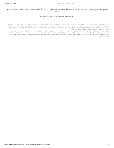 دﮭﻋ موﯾ ﺔﺑﺳﺎﻧﻣﺑ يدﺎﺣﺗﻻا ﻲﻧطوﻟا سﻠﺟﻣﻟا نوؤﺷﻟ ﺔﻟودﻟا ةرازو ﻲﻓ ةدﻧﺎﺳﻣﻟا تﺎﻣدﺧﻟا عﺎطﻘﻟ دﻋﺎﺳﻣﻟا ةرازوﻟا لﯾﻛو يدﻋ نﺑ دﻣﺣﻣ ﻲﻣﺎﺳ ةدﺎﻌﺳ ﺢﯾرﺻﺗ
