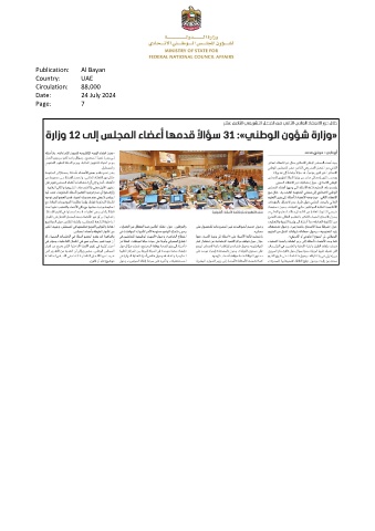 Publication: Al Bayan Country: UAE Circulation: 88,000 Date: 24 July 2024 Page: 7