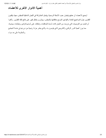 نوﺑﺗﻛﯾ ثﯾﺣ ،سﻠﺟﻣﻠﻟ ﺔﯾﻠﺧادﻟا نﺎﺟﻠﻟا ﻲﻓ ﺔﻛرﺎﺷﻣﻟا لﻣﺷﯾو ﺔﯾﻣﺳرﻟا ﺔﻠﺋﺳﻷا دودﺣ زوﺎﺟﺗﯾ مﮭﻠﻣﻋ نأ ءﺎﺿﻋﻷا ﺢﺿوأ