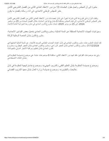 نﻣﺎﺛﻟا ﻲﻌﯾرﺷﺗﻟا لﺻﻔﻟا نﻣ ﻲﻧﺎﺛﻟا يدﺎﻌﻟا دﺎﻘﻌﻧﻻا رود نﻣ 13 تﺎﺳﻠﺟﻟا لوط لﺻاو سﻠﺟﻣﻟا نأ ﻰﻟإ ةرﯾﺷﻣ
