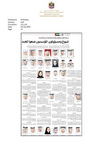 Publication: Al Khaleej Country: UAE Circulation: 121,141 Date: 18 July 2025 Page: 14