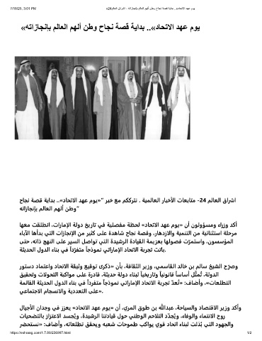 ﺎﻬﻌﻣ ﺖﻘﻠﻄﻧا ،تارﺎﻣإلا ﺔﻟود ﺦﻳرﺎﺗ ﻲﻓ ﺔﻴﻠﺼﻔﻣ ﺔﻈﺤﻟ «دﺎﺤﺗالا ﺪﻬﻋ مﻮﻳ» نأ نﻮﻟوﺆﺴﻣو ءارزو ﺪﻛأ