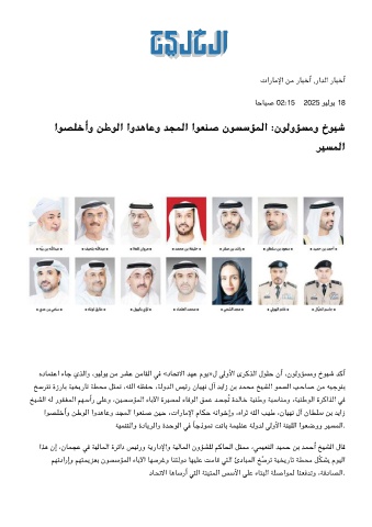 اﻮﺼﻠﺧأو ﻦﻃﻮﻟا اوﺪﻫﺎﻋو ﺪﺠﻤﻟا اﻮﻌﻨﺻ ﻦﻴﺣ ،تارﺎﻣﻹا مﺎﺣ ﻪﻧاﻮﺧإو ،هاﺮﺛ ﻪﻟا ﺐﻴﻃ ،نﺎﻴﻬﻧ لآ نﺎﻄﻠﺳ ﻦﺑ ﺪﻳاز