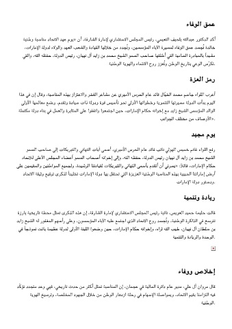 ،تارﺎﻣﻹا ﺔﻟوﺪﻟ ءﻻﻮﻟاو ﺪﻬﻌﻟا ﺐﻌﺸﻟاو ةدﺎﻴﻘﻟا ﺎﻬﻟﻼﺧ ﻦﻣ دﺪﺠُﺗو ،ﻦﻴﺴﺳﺆﻤﻟا ءﺎﺑﻵا ةﺮﻴﺴﻤﻟ ءﺎﻓﻮﻟا ﻖﻤﻋ ﺪﺴﺠُﺗ ةﺪﻟﺎﺧ