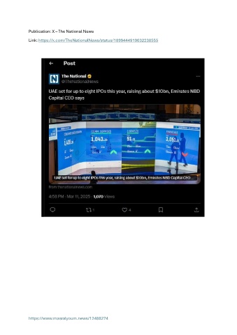 Publication: X – The National News Link: https://x.com/TheNationalNews/status/1899444919032238555 https://www.masralyoum.news/12488274