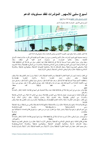 ةعانصلاو راقعلاو ةيلاملا تاعاطق يف مهسأ عجارت عم ،ةطقن 9447.8 ىلإ % 1.2 ةبسنب ،عوبسأ للاخ ،يبظوبأ قوس رشؤم عجارت