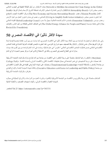 ﺔﺑﺎﺷ ﺔﯾدﺎﯿﻗ ﺔﯿﺼﺨﺷ 100 زﺮﺑأ ﻦﯿﺑ ﻦﻣ تءﺎﺟ ﺎﻤﻛ ،يﺮﺼﻤﻟا دﺎﺼﺘﻗﻻا ﻲﻓ ا ً ﺮﯿﺛﺄﺗ ﺮﺜﻛﻷا ةﺪﯿﺳ 50ـﻟا ﻦﯿﺑ ﻦﻣ ةﺪﺣاﻮﻛ ،ﺎھرﺎﯿﺘﺧا ﻢﺗ ،2015 مﺎﻋ ﻲﻓو