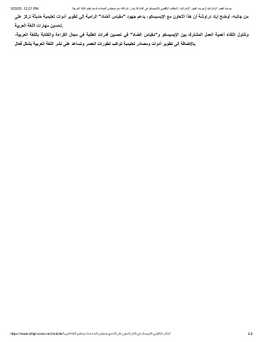 3/20/25, 12:27 PM ﺔﯾﺑرﻌﻟا ﺔﻐﻠﻟا مﯾﻠﻌﺗ مﻋدﻟ «دﺎﺿﻟا سﺎﯾﻘﻣ» ﻊﻣ ﮫﺗﻛارﺷ ززﻌﯾ ﺔﻗرﺎﺷﻟا ﻲﻓ وﻛﺳﯾﺳﯾﻺﻟ ﻲﻣﯾﻠﻗﻹا بﺗﻛﻣﻟا | ﮫﯾﺗارﺎﻣﻹا رﺟﻔﻟا ةدﯾرﺟ | ﮫﯾﺗارﺎﻣﻹا رﺟﻔﻟا ةدﯾرﺟ