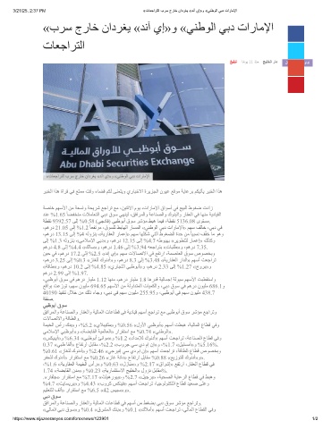 ،ﻢھرد 21.05 ﻰﻟإ %1.2 ً ﺎﻌﻔﺗﺮﻣ ،قﻮﺴﻠﻟ ﻂﺑﺎﮭﻟا رﺎﺴﻤﻟا «ﻲﻨطﻮﻟا ﻲﺑد تارﺎﻣﻹا» ﻢﮭﺳ ﻒﻟﺎﺧ ،ﻲﺑد ﻲﻓ