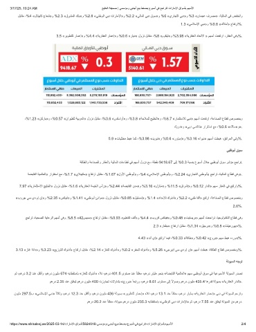 ﺔﻗﺎطﻟاو ﺔﻋﺎﻧﺻﻟاو رﺎﻘﻌﻟاو ﺔﯾﻟﺎﻣﻟا تﺎﻋﺎطﻗ ﻲﻓ مﮭﺳأ لوزﻧ ﻊﻣ ،ﺔطﻘﻧ 9418.67 ﻰﻟإ %0.3 ﺔﺑﺳﻧﺑ عوﺑﺳأ لﻼﺧ ﻲﺑظوﺑأ قوﺳ رﺷؤﻣ ﻊﺟارﺗ.