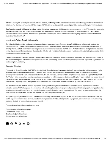 https://www.zawya.com/en/press-release/companies-news/alef-education-shareholders-approve-aed-4028mln-final-cash-dividend-for-year-2024-follow… 2/3