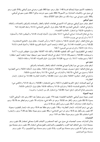 ﻢﻫرد نﻮﻴﻠﻣ 519و ﺒﻇﻮﺑأ قﻮﺳ ﻓ ﻢﻫرد نﻮﻴﻠﻣ 963 ﺎﻬﻨﻣ ،ﻢﻫرد رﺎﻴﻠﻣ 1.48 ﺎﻫرﺪﻗ ﺔﻴﻟﺎﻤﺟإ ﺔﻟﻮﻴﺳ ﻢﻬﺳﻷا ﺖﺒﻄﻘﺘﺳاو