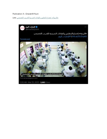 Publication: X – Emarat Al Youm Link: يصصختلا بيردتلل ةيسردملا تادايقلاو نيملعملا عاضخإ :»ةيبرتلا«