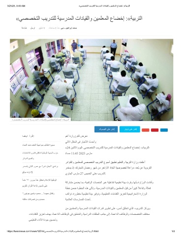 https://twaslnews.com/news/12514/ﻲﺻﺻﺧﺗﻟا-بﯾردﺗﻠﻟ-ﺔﯾﺳردﻣﻟا-تادﺎﯾﻘﻟاو-نﯾﻣﻠﻌﻣﻟا-عﺎﺿﺧإ-ﺔﯾﺑرﺗﻟا.html 1/2