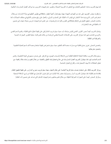 ﻦﯿﺴﺤﺗ ﻰﻟإ فﺪﮭﺗ ،ﺔﺜﯾﺪﺣ ﺲﯾرﺪﺗ تﺎﯿﺠﯿﺗاﺮﺘﺳا ﻢﯾﺪﻘﺗ ﺮﺒﻋ ،تﺎﯿﺿﺎﯾﺮﻟاو ةءاﺮﻘﻟاو مﻮﻠﻌﻟا ﻲﻓ PISA 2025 ﻲﻓ قﻮﻔﺘﻟا ﻖﯿﻘﺤﺗ روﺎﺤﻤﻟا لوﺎﻨﺘﺘﺳ