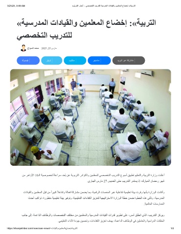 3/25/25, 9:48 AM «قرﺷﻟا رﺎﺑﺧأ – ﻲﺻﺻﺧﺗﻟا بﯾردﺗﻠﻟ ﺔﯾﺳردﻣﻟا تادﺎﯾﻘﻟاو نﯾﻣﻠﻌﻣﻟا عﺎﺿﺧإ :«ﺔﯾﺑرﺗﻟا