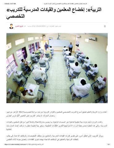 3/25/25, 9:47 AM «موﯾﻟا تارﺎﻣﻹا رﺎﺑﺧأ | ﻲﺻﺻﺧﺗﻟا بﯾردﺗﻠﻟ ﺔﯾﺳردﻣﻟا تادﺎﯾﻘﻟاو نﯾﻣﻠﻌﻣﻟا عﺎﺿﺧإ :«ﺔﯾﺑرﺗﻟا