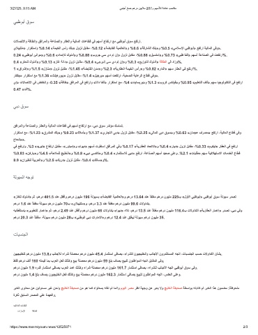 رارﻘﺗﺳا ﻊﻣ ،%1.23 «قرﺷﻣﻟا كﻧﺑ»و %0.23 «كﻼﻣأ»و %1.37 «يرﺎﺟﺗﻟا ﻲﺑد» لوزﻧ لﺑﺎﻘﻣ ،%2.25 «ﻲﻟﺎﻣﻟا ﻲﺑد قوﺳ»و %0.63 «نﺎﻣﺟﻋ فرﺻﻣ» ﻊﻔﺗرا ،ﺔﯾﻟﺎﻣﻟا عﺎطﻗ ﻲﻓو
