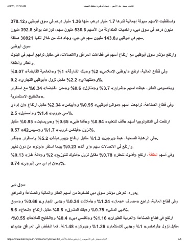 يد مإ نإ» عﺎﻔﺗرا لﺑﺎﻘﻣ %2.34 «سﻛﺑﯾآ»و %0.95 «ﻲﺑظوﺑأ ﺊﻧاوﻣ» مﮭﺳأ تﻌﺟارﺗ ،ﺔﻋﺎﻧﺻﻟا عﺎطﻗ ﻲﻓو